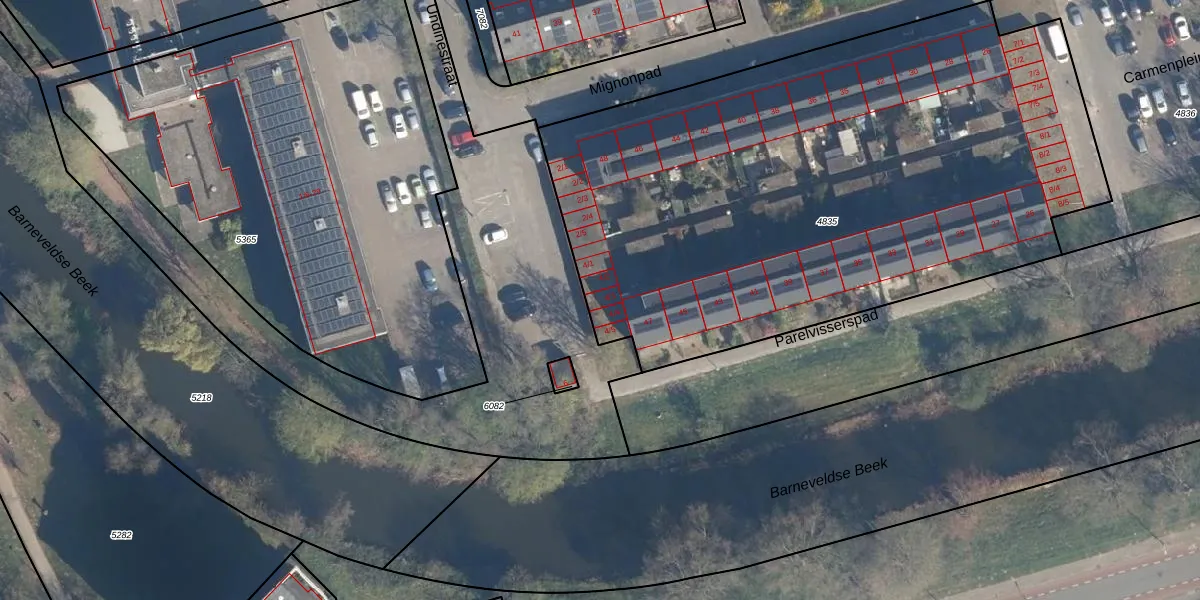 Het adres is gelegen op perceel 4835 in de sectie A en de kadastrale gemeente Amersfoort. De kadastrale aanduiding is aldus AMF00-A-4835. Het perceel is met 3711 m² relatief groot. Het gemiddelde ligt in de kadastrale gemeente Amersfoort op 959,8 m². Het kleinste perceel in de kadastrale gemeente is 0 m² groot. De grootste perceeloppervlakte is 1,12 km². Op het perceel liggen in totaal 44 adressen. De laatste wijziging in het de Basisregistratie Kadaster (BRK) was op 03-03-2009.