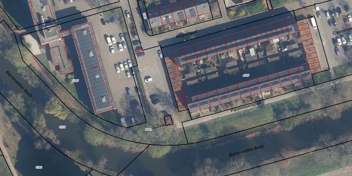 Het perceel waarop Undinestraat 4-1 staat heeft een oppervlakte van 3711 m². Dit is een zeer groot perceel. De perceeloppervlakte wordt geregistreerd door het Kadaster. Gedetailleerde informatie over de maten van dit perceel kunt u vinden in het rapport Kadastrale kaart met maatvoering van Undinestraat 4-1.