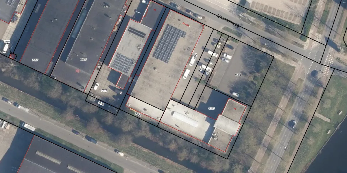 Het perceel waarop Uraniumweg 46-A staat heeft een oppervlakte van 1596 m². Dit is een zeer groot perceel. De perceeloppervlakte wordt geregistreerd door het Kadaster. Gedetailleerde informatie over de maten van dit perceel kunt u vinden in het rapport Kadastrale kaart met maatvoering van Uraniumweg 46-A.