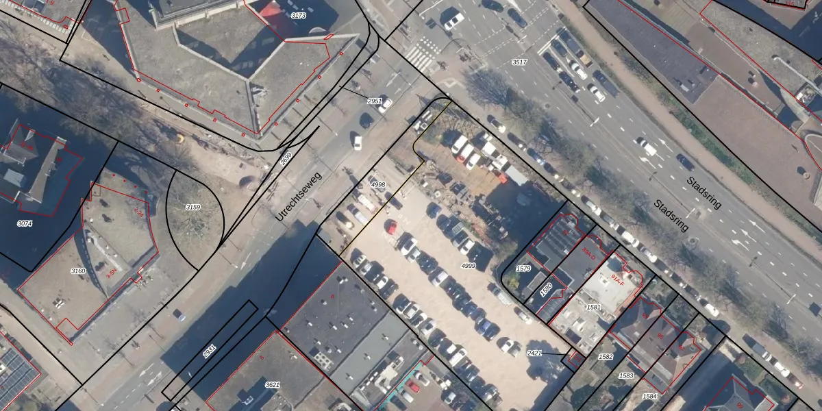 Het perceel waarop het adres ligt is AMF00-H-4999. De afkorting 'AMF00' staat voor kadastrale gemeente Amersfoort. De oppervlakte van het perceel is 2344 m². Dat is groter dan gemiddeld in Amersfoort, waar de gemiddelde perceeloppervlakte op 959,94 m² ligt. Het grootste perceel in de kadastrale gemeente is 1,12 km². Het kleinste perceel heeft een oppervlakte van 0 m². Op het perceel zijn 104 adressen aanwezig. In de Basisregistratie Kadaster (BRK) werden de grenzen van het perceel geregistreerd op 17-05-2023.