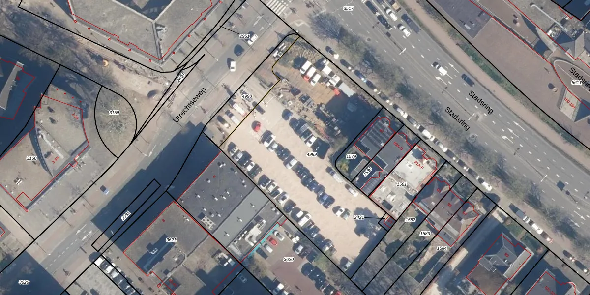 Het perceel waarop het adres ligt is AMF00-H-4999. De afkorting 'AMF00' staat voor kadastrale gemeente Amersfoort. De oppervlakte van het perceel is 2344 m². Dat is groter dan gemiddeld in Amersfoort, waar de gemiddelde perceeloppervlakte op 959,94 m² ligt. Het kleinste perceel in de kadastrale gemeente is 0 m² groot. De grootste perceeloppervlakte is 1,12 km². Er zijn 104 adressen aanwezig op het perceel. De huidige grenzen van het perceel zijn digitaal in de Basisregistratie Kadaster (BRK) geregistreerd op 17-05-2023.