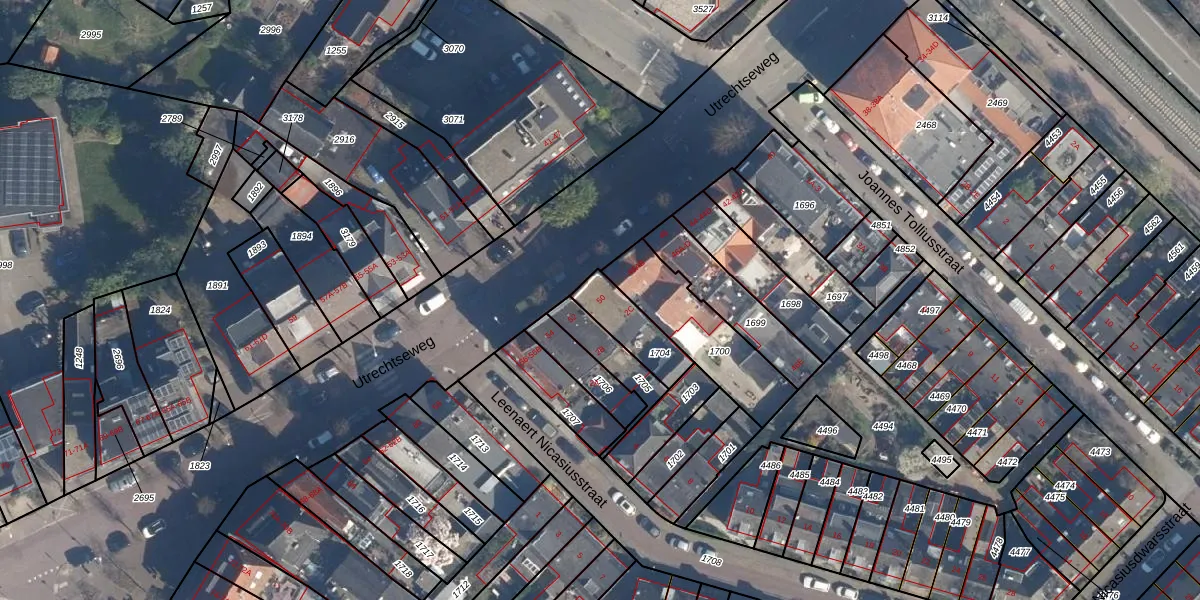 Utrechtseweg 50 is gelegen op kadastraal perceel AMF00H1704. Deze kadastrale aanduiding is uniek en wordt gebruikt door het Kadaster om eigendomsrechten en andere zakelijke rechten vast te leggen. Het perceel maakt onderdeel uit van de kadastrale gemeente Amersfoort.