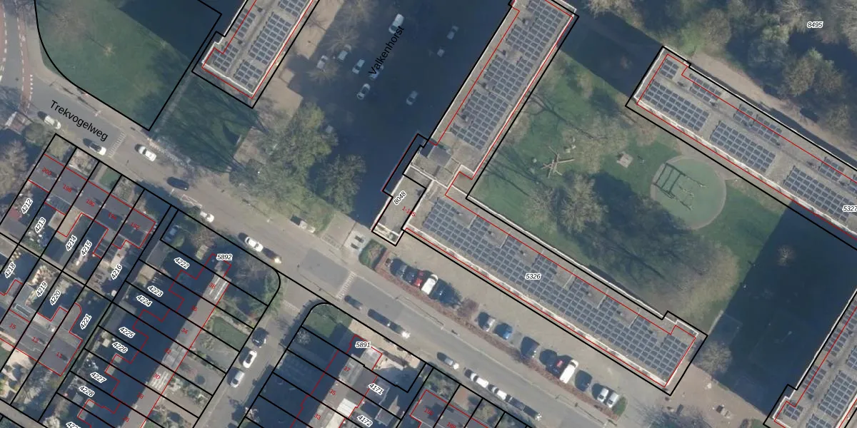 Het perceel waarop Valkenhorst 109 staat heeft een oppervlakte van 1821 m². Dit is een zeer groot perceel. De perceeloppervlakte wordt geregistreerd door het Kadaster. Gedetailleerde informatie over de maten van dit perceel kunt u vinden in het rapport Kadastrale kaart met maatvoering van Valkenhorst 109.