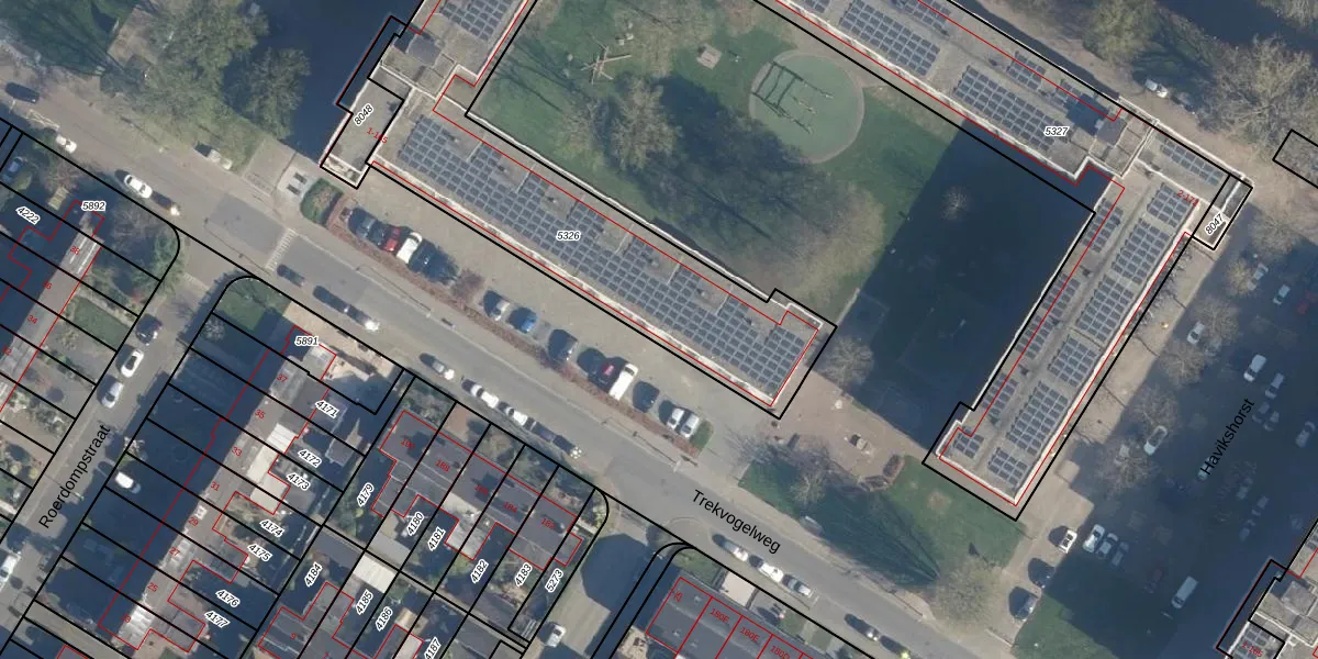 Het adres is gelegen op perceel 5326 in de sectie A en de kadastrale gemeente Amersfoort. De kadastrale aanduiding is aldus AMF00-A-5326. De oppervlakte van het perceel is 1821 m². Dat is groter dan gemiddeld in Amersfoort, waar de gemiddelde perceeloppervlakte op 960,23 m² ligt. De grootste perceeloppervlakte in de kadastrale gemeente is 1,12 km². De kleinste oppervlakte bedraagt 0 m². Er zijn 80 adressen aanwezig op het perceel. De huidige grenzen van het perceel zijn digitaal in de Basisregistratie Kadaster (BRK) geregistreerd op 27-07-2018.