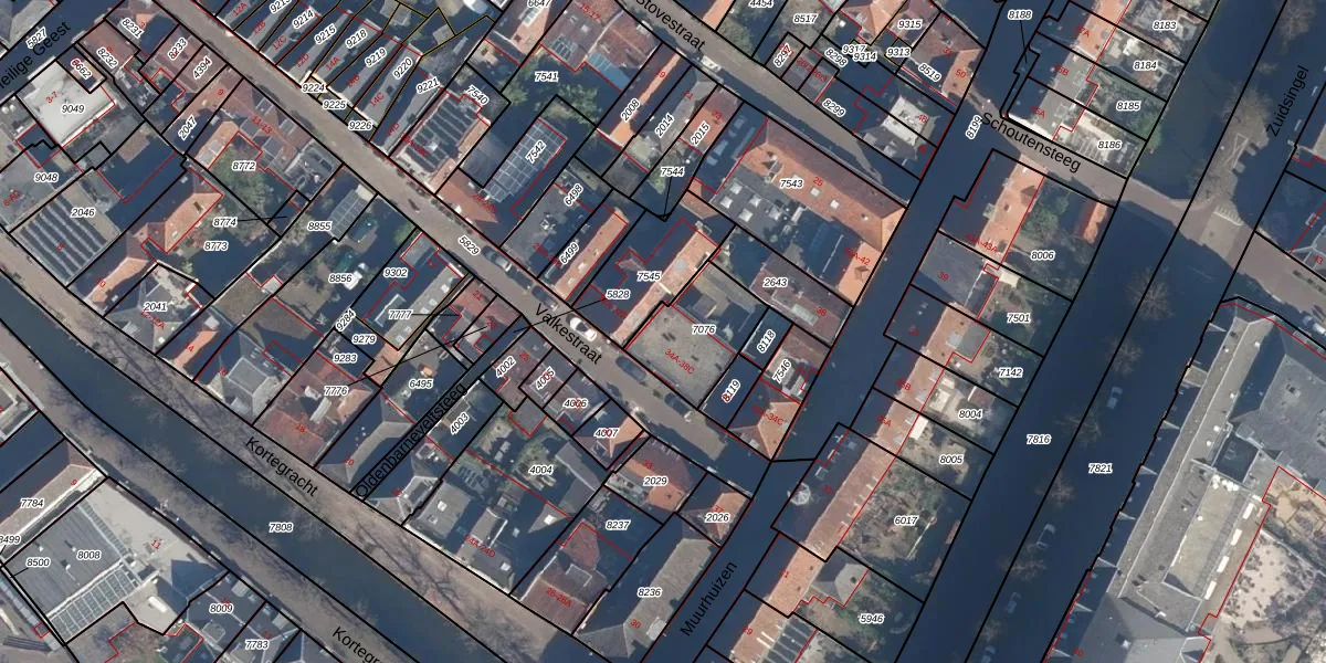 Valkestraat 36-B is gelegen op kadastraal perceel AMF00E7076. Deze kadastrale aanduiding is uniek en wordt gebruikt door het Kadaster om eigendomsrechten en andere zakelijke rechten vast te leggen. Het perceel maakt onderdeel uit van de kadastrale gemeente Amersfoort.