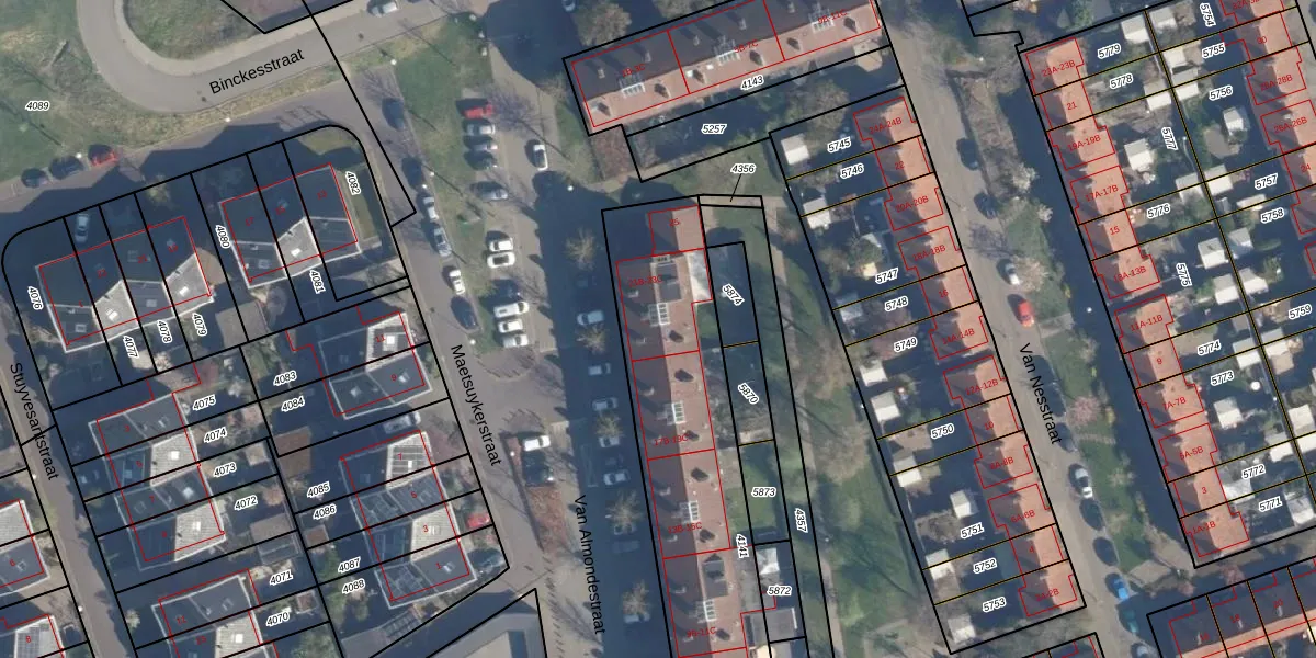 Het perceel waarop Van Almondestraat 21-C staat heeft een oppervlakte van 1510 m². Dit is een zeer groot perceel. De perceeloppervlakte wordt geregistreerd door het Kadaster. Gedetailleerde informatie over de maten van dit perceel kunt u vinden in het rapport Kadastrale kaart met maatvoering van Van Almondestraat 21-C.