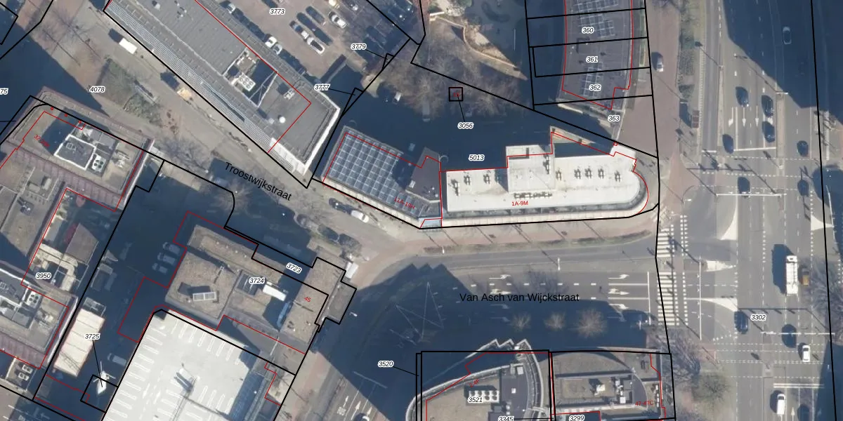 Het perceel waarop Van Asch van Wijckstraat 13-D staat heeft een oppervlakte van 2129 m². Dit is een zeer groot perceel. De perceeloppervlakte wordt geregistreerd door het Kadaster. Gedetailleerde informatie over de maten van dit perceel kunt u vinden in het rapport Kadastrale kaart met maatvoering van Van Asch van Wijckstraat 13-D.