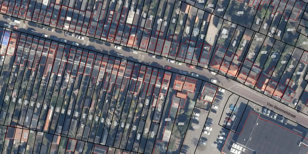 Het perceel waarop Van Bemmelstraat 101 staat heeft een oppervlakte van 139 m². Dit is een middelgroot perceel. De perceeloppervlakte wordt geregistreerd door het Kadaster. Gedetailleerde informatie over de maten van dit perceel kunt u vinden in het rapport Kadastrale kaart met maatvoering van Van Bemmelstraat 101.