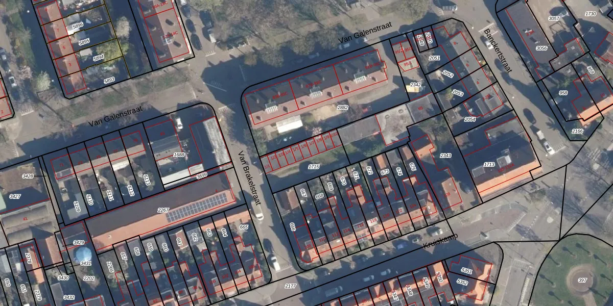Het perceel waarop Van Brakelstraat 1-6 staat heeft een oppervlakte van 335 m². Dit is een groot perceel. De perceeloppervlakte wordt geregistreerd door het Kadaster. Gedetailleerde informatie over de maten van dit perceel kunt u vinden in het rapport Kadastrale kaart met maatvoering van Van Brakelstraat 1-6.