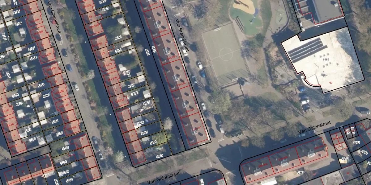 Het perceel waarop Van Brakelstraat 18-C staat heeft een oppervlakte van 1580 m². Dit is een zeer groot perceel. De perceeloppervlakte wordt geregistreerd door het Kadaster. Gedetailleerde informatie over de maten van dit perceel kunt u vinden in het rapport Kadastrale kaart met maatvoering van Van Brakelstraat 18-C.