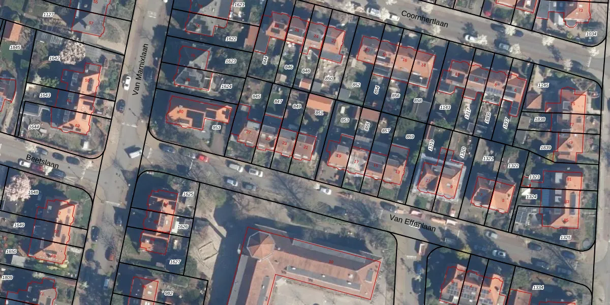 Het perceel waarop Van Effenlaan 21 staat heeft een oppervlakte van 256 m². Dit is een middelgroot perceel. De perceeloppervlakte wordt geregistreerd door het Kadaster. Gedetailleerde informatie over de maten van dit perceel kunt u vinden in het rapport Kadastrale kaart met maatvoering van Van Effenlaan 21.
