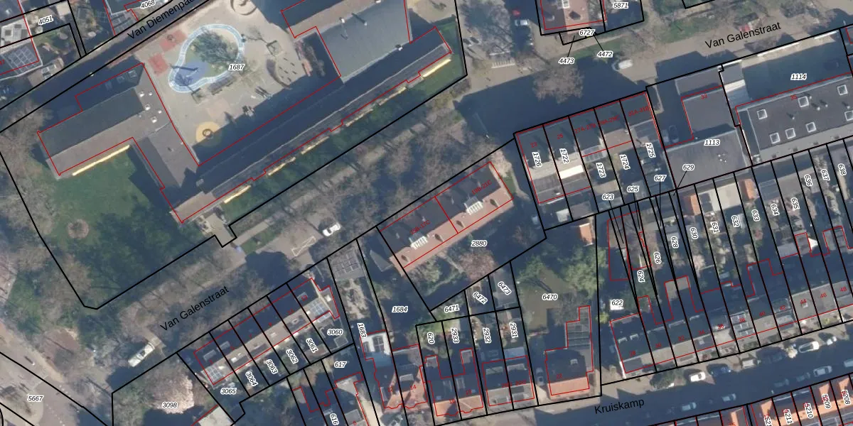 Het perceel waarop Van Galenstraat 17-A staat heeft een oppervlakte van 840 m². Dit is een groot perceel. De perceeloppervlakte wordt geregistreerd door het Kadaster. Gedetailleerde informatie over de maten van dit perceel kunt u vinden in het rapport Kadastrale kaart met maatvoering van Van Galenstraat 17-A.