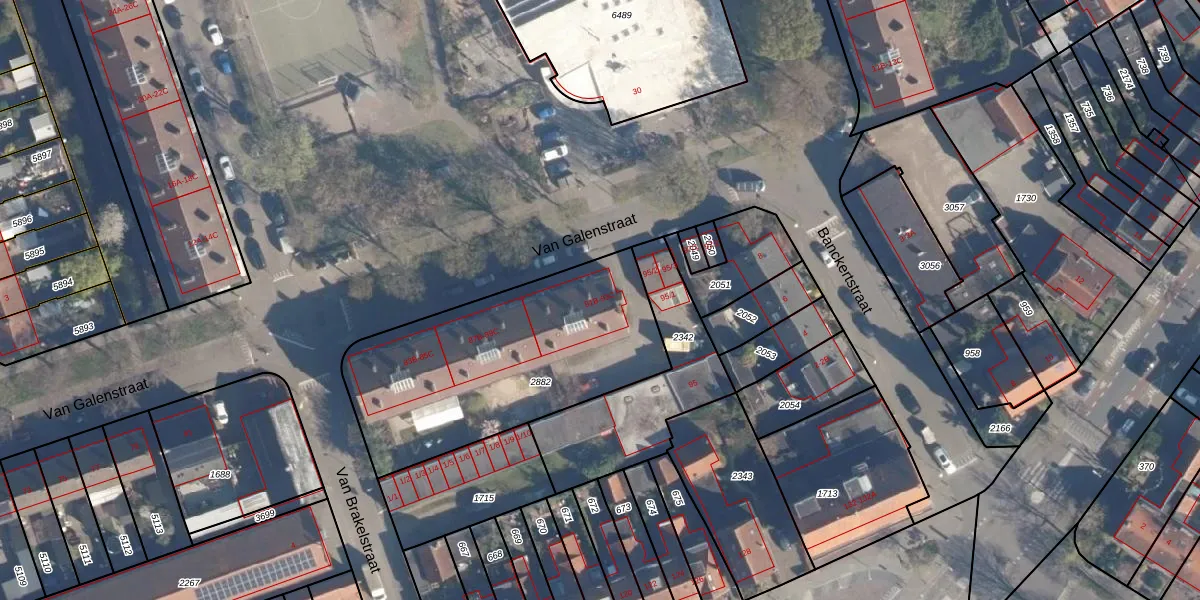 Het perceel waarop Van Galenstraat 93-C staat heeft een oppervlakte van 1155 m². Dit is een zeer groot perceel. De perceeloppervlakte wordt geregistreerd door het Kadaster. Gedetailleerde informatie over de maten van dit perceel kunt u vinden in het rapport Kadastrale kaart met maatvoering van Van Galenstraat 93-C.