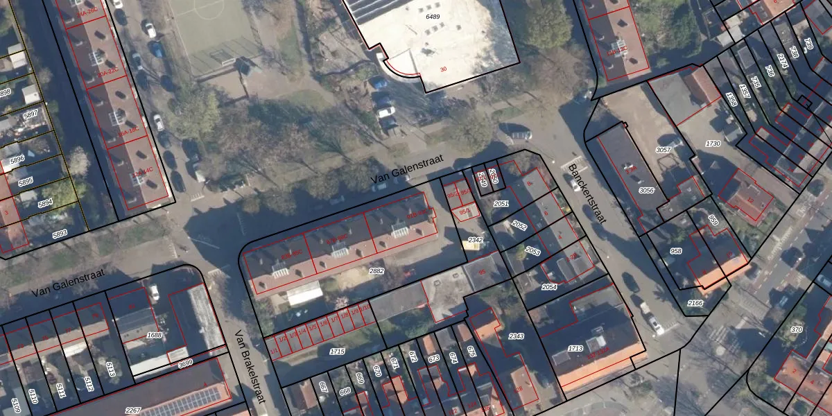 Van Galenstraat 93-B is gelegen op kadastraal perceel AMF00G2882. Deze kadastrale aanduiding is uniek en wordt gebruikt door het Kadaster om eigendomsrechten en andere zakelijke rechten vast te leggen. Het perceel maakt onderdeel uit van de kadastrale gemeente Amersfoort.