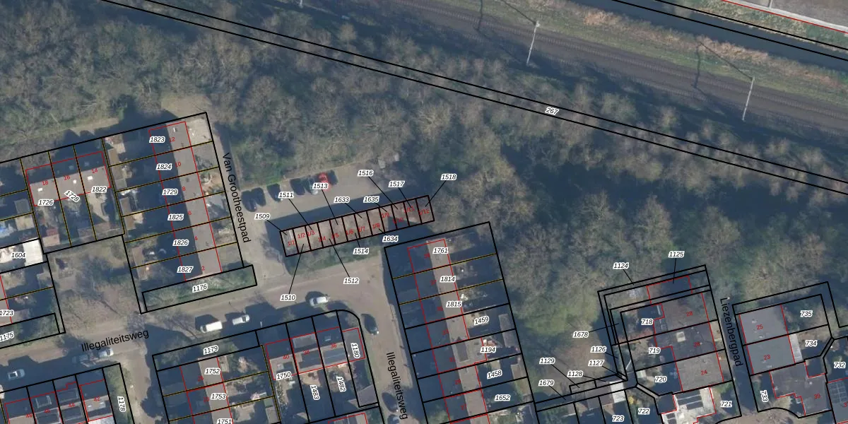 Gebruik de zoekbalk of klik op een perceel voor informatie over de adressen binnen dit perceel.