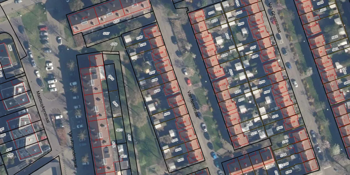 Het perceel waarop Van Nesstraat 14-A staat heeft een oppervlakte van 325 m². Dit is een groot perceel. De perceeloppervlakte wordt geregistreerd door het Kadaster. Gedetailleerde informatie over de maten van dit perceel kunt u vinden in het rapport Kadastrale kaart met maatvoering van Van Nesstraat 14-A.