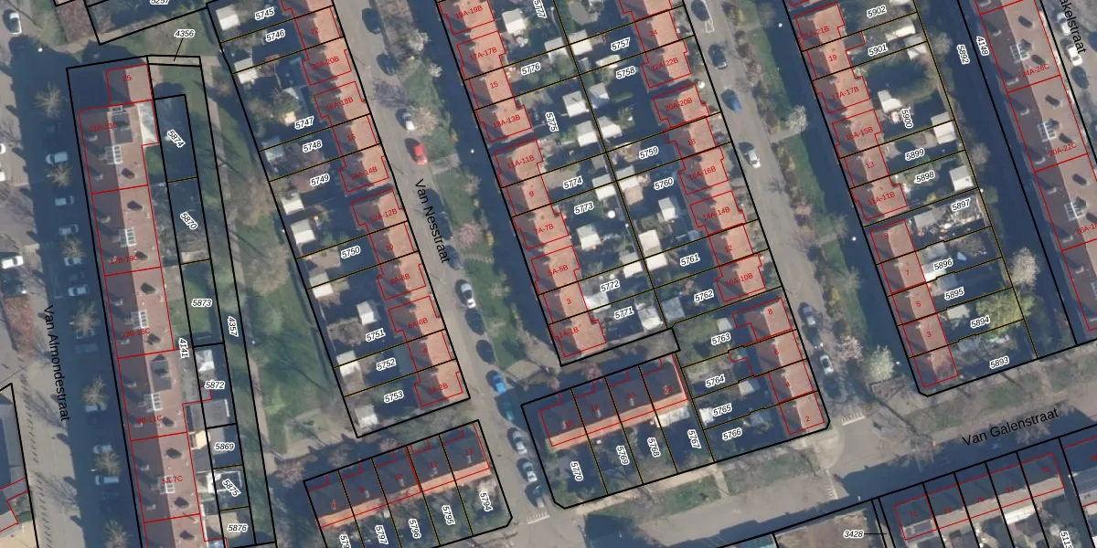 Van Nesstraat 5-A is gelegen op kadastraal perceel AMF00G5773. Deze kadastrale aanduiding is uniek en wordt gebruikt door het Kadaster om eigendomsrechten en andere zakelijke rechten vast te leggen. Het perceel maakt onderdeel uit van de kadastrale gemeente Amersfoort.