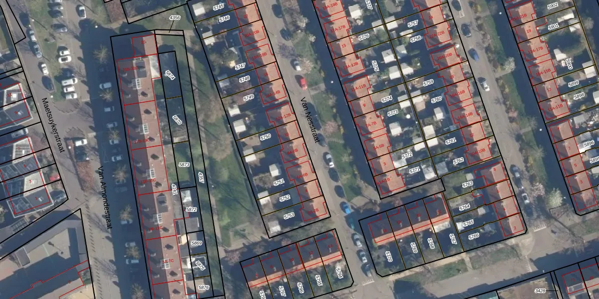 Van Nesstraat 8-A is gelegen op kadastraal perceel AMF00G5751. Deze kadastrale aanduiding is uniek en wordt gebruikt door het Kadaster om eigendomsrechten en andere zakelijke rechten vast te leggen. Het perceel maakt onderdeel uit van de kadastrale gemeente Amersfoort.