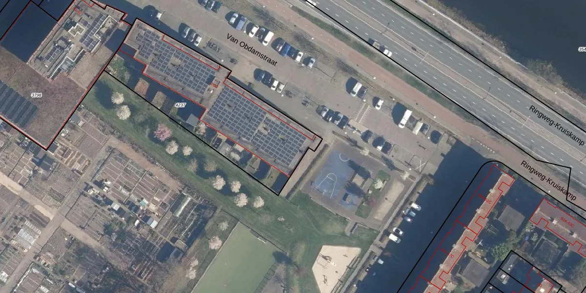 Van Obdamstraat 1 is gelegen op kadastraal perceel AMF00G4237. Deze kadastrale aanduiding is uniek en wordt gebruikt door het Kadaster om eigendomsrechten en andere zakelijke rechten vast te leggen. Het perceel maakt onderdeel uit van de kadastrale gemeente Amersfoort.