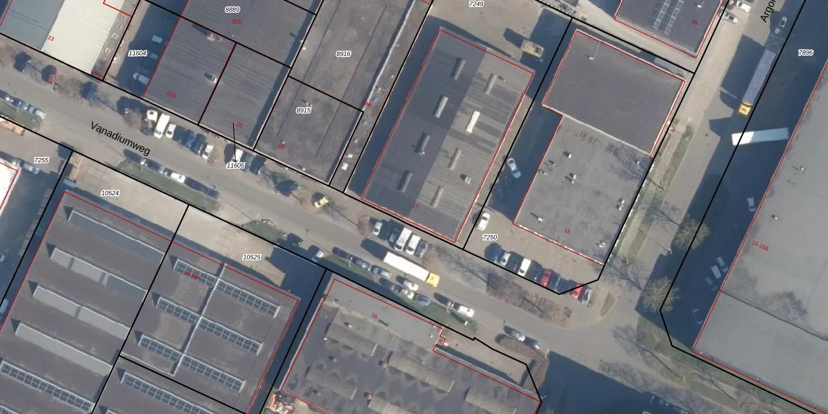 Het perceel waarop Vanadiumweg 17 staat heeft een oppervlakte van 1978 m². Dit is een zeer groot perceel. De perceeloppervlakte wordt geregistreerd door het Kadaster. Gedetailleerde informatie over de maten van dit perceel kunt u vinden in het rapport Kadastrale kaart met maatvoering van Vanadiumweg 17.