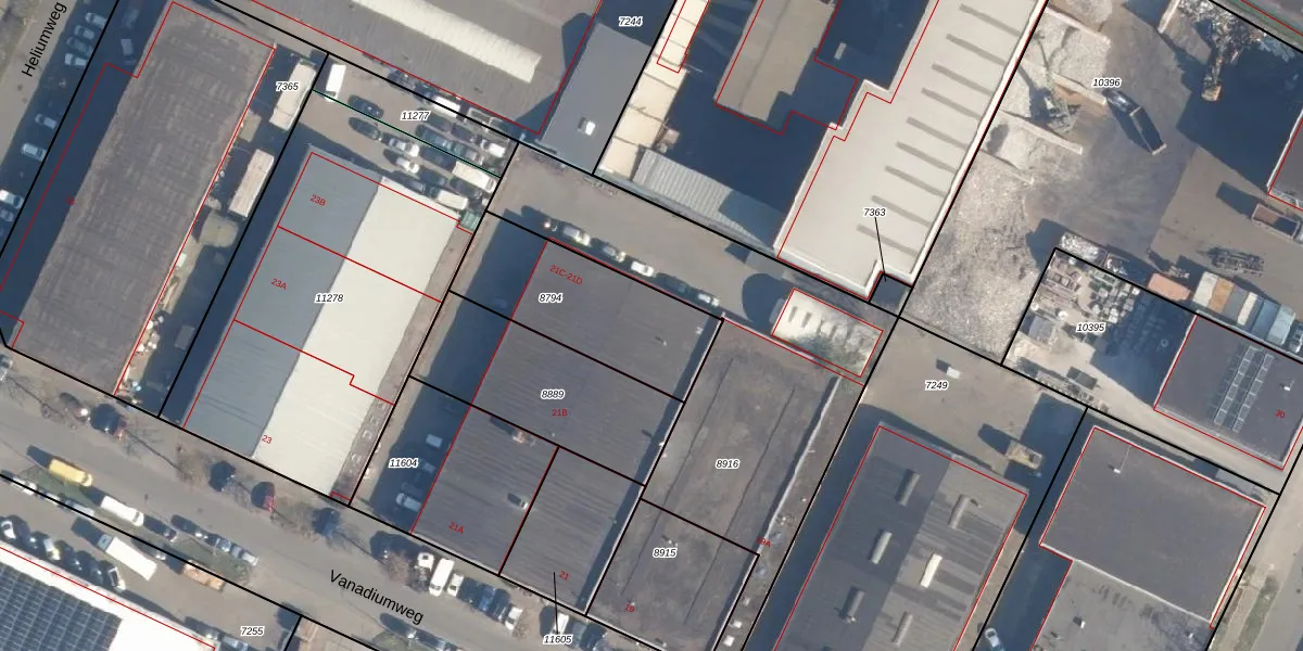 Het perceel waarop Vanadiumweg 21-D staat heeft een oppervlakte van 556 m². Dit is een groot perceel. De perceeloppervlakte wordt geregistreerd door het Kadaster. Gedetailleerde informatie over de maten van dit perceel kunt u vinden in het rapport Kadastrale kaart met maatvoering van Vanadiumweg 21-D.