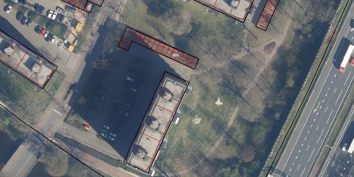 Verdiweg 175 is gelegen op kadastraal perceel AMF00A4996. Deze kadastrale aanduiding is uniek en wordt gebruikt door het Kadaster om eigendomsrechten en andere zakelijke rechten vast te leggen. Het perceel maakt onderdeel uit van de kadastrale gemeente Amersfoort.