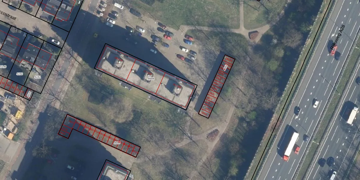 Het adres ligt op het perceel AMF00-A-4994, dat zich in de kadastrale gemeente Amersfoort bevindt. Het perceel is 840 m² groot. Dat is kleiner dan de gemiddelde perceeloppervlakte in Amersfoort, dat op 959,94 m² ligt. De grootste perceeloppervlakte in de kadastrale gemeente is 1,12 km². De kleinste oppervlakte bedraagt 0 m². Op het perceel zijn 51 adressen aanwezig. De huidige grenzen van het perceel zijn digitaal in de Basisregistratie Kadaster (BRK) geregistreerd op 03-12-2009.