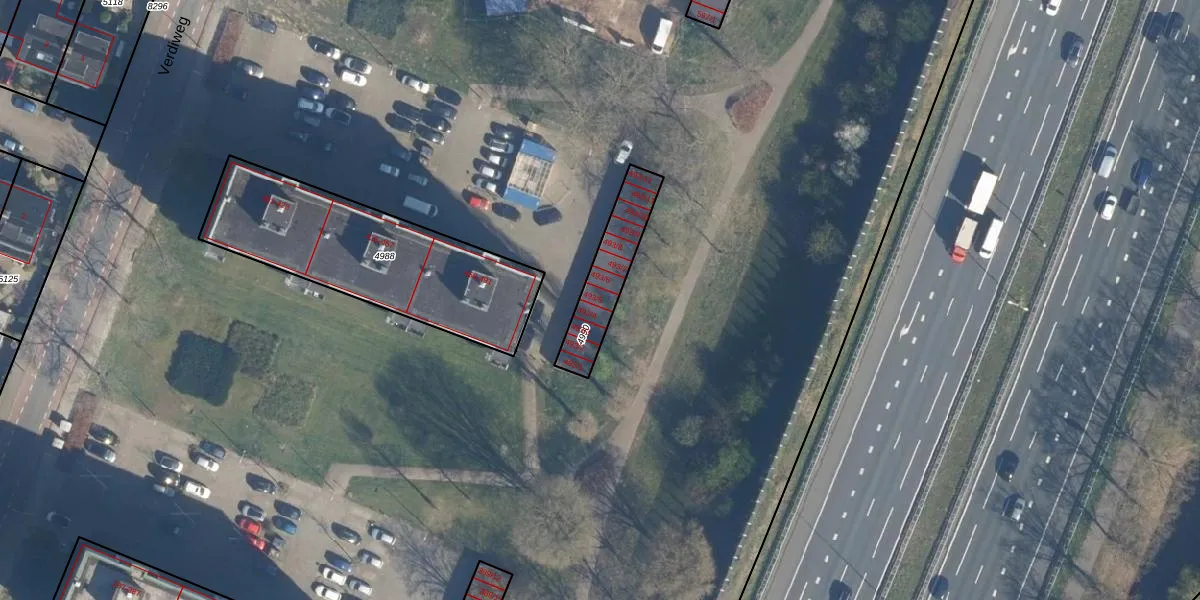 Verdiweg 493-5 is gelegen op kadastraal perceel AMF00A4990. Deze kadastrale aanduiding is uniek en wordt gebruikt door het Kadaster om eigendomsrechten en andere zakelijke rechten vast te leggen. Het perceel maakt onderdeel uit van de kadastrale gemeente Amersfoort.
