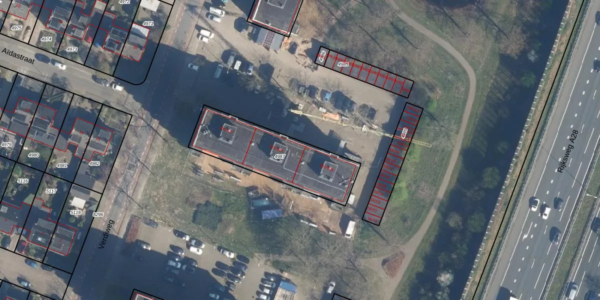 Verdiweg 537 is gelegen op kadastraal perceel AMF00A4987. Deze kadastrale aanduiding is uniek en wordt gebruikt door het Kadaster om eigendomsrechten en andere zakelijke rechten vast te leggen. Het perceel maakt onderdeel uit van de kadastrale gemeente Amersfoort.