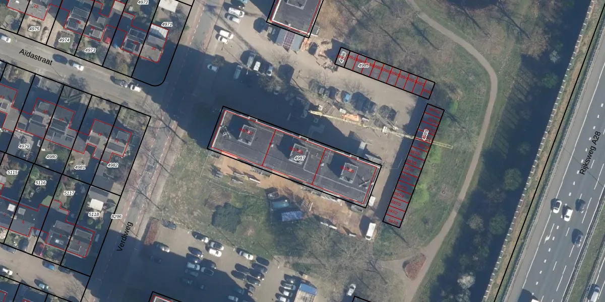 Verdiweg 539 is gelegen op kadastraal perceel AMF00A4987. Deze kadastrale aanduiding is uniek en wordt gebruikt door het Kadaster om eigendomsrechten en andere zakelijke rechten vast te leggen. Het perceel maakt onderdeel uit van de kadastrale gemeente Amersfoort.