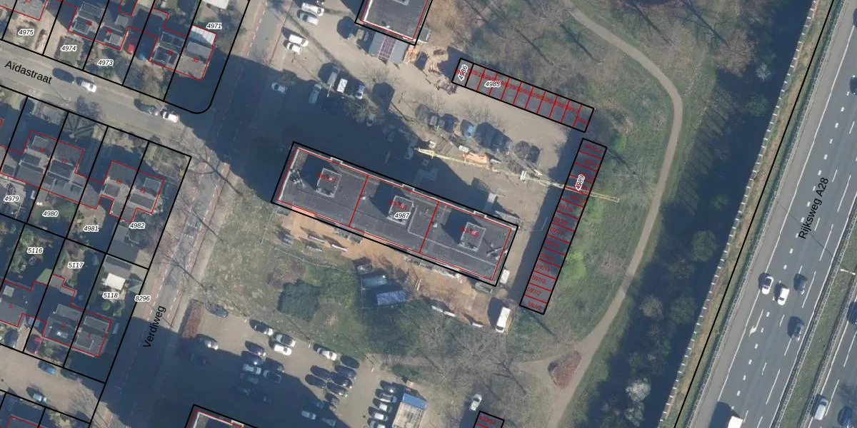 Verdiweg 545 is gelegen op kadastraal perceel AMF00A4987. Deze kadastrale aanduiding is uniek en wordt gebruikt door het Kadaster om eigendomsrechten en andere zakelijke rechten vast te leggen. Het perceel maakt onderdeel uit van de kadastrale gemeente Amersfoort.