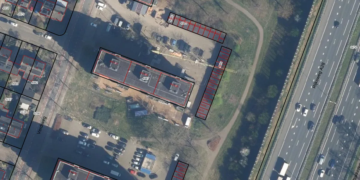 Verdiweg 583 is gelegen op kadastraal perceel AMF00A4987. Deze kadastrale aanduiding is uniek en wordt gebruikt door het Kadaster om eigendomsrechten en andere zakelijke rechten vast te leggen. Het perceel maakt onderdeel uit van de kadastrale gemeente Amersfoort.