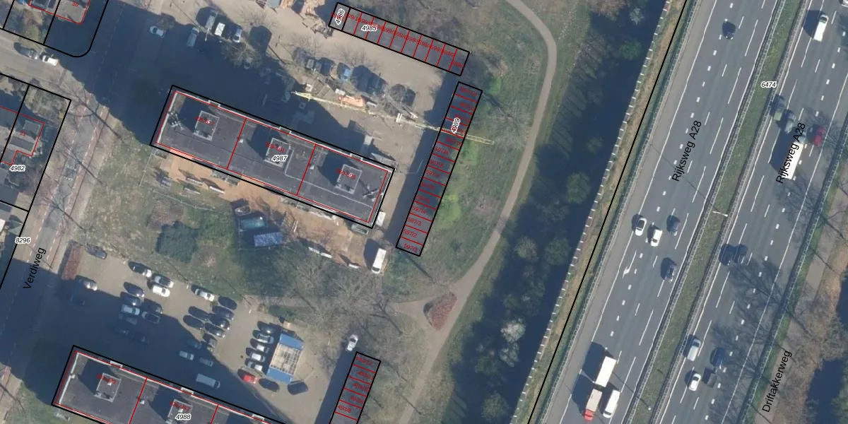 Verdiweg 597-4 is gelegen op kadastraal perceel AMF00A4989. Deze kadastrale aanduiding is uniek en wordt gebruikt door het Kadaster om eigendomsrechten en andere zakelijke rechten vast te leggen. Het perceel maakt onderdeel uit van de kadastrale gemeente Amersfoort.