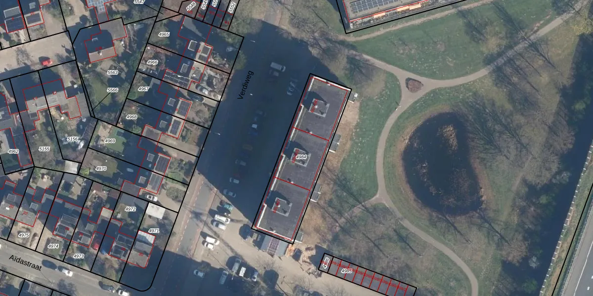 Verdiweg 645 is gelegen op kadastraal perceel AMF00A4984. Deze kadastrale aanduiding is uniek en wordt gebruikt door het Kadaster om eigendomsrechten en andere zakelijke rechten vast te leggen. Het perceel maakt onderdeel uit van de kadastrale gemeente Amersfoort.