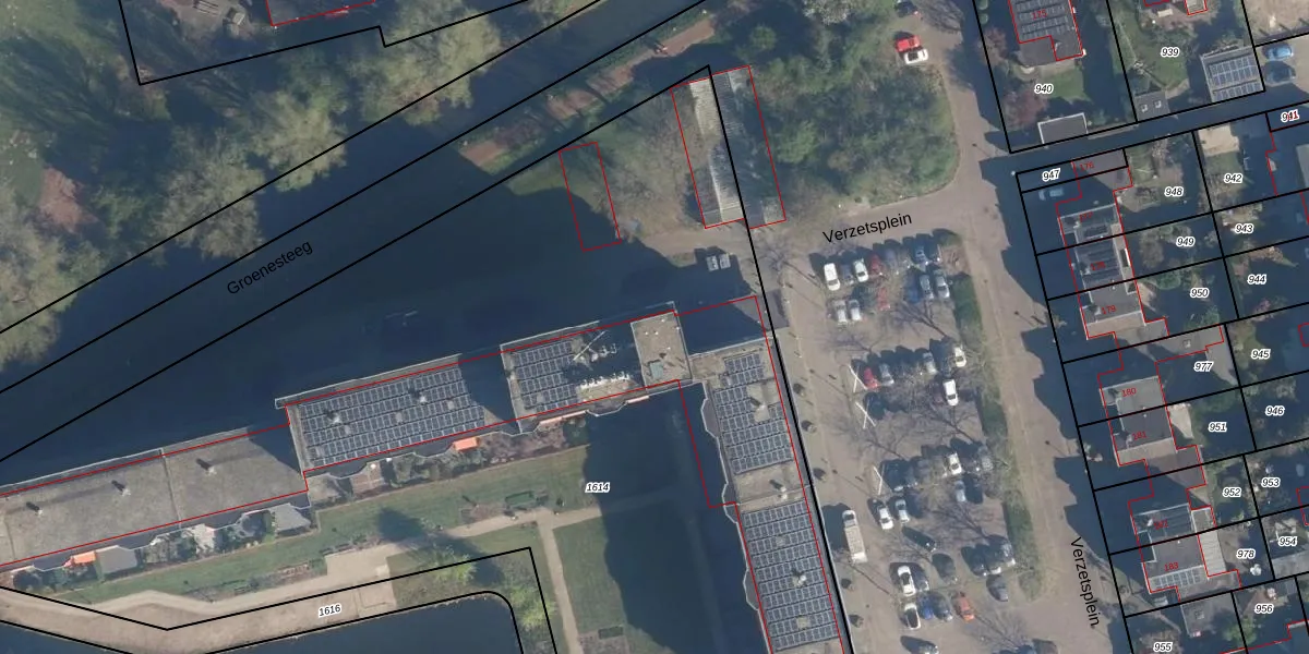 Het perceel waarop Verzetsplein 109 staat heeft een oppervlakte van 7155 m². Dit is een zeer groot perceel. De perceeloppervlakte wordt geregistreerd door het Kadaster. Gedetailleerde informatie over de maten van dit perceel kunt u vinden in het rapport Kadastrale kaart met maatvoering van Verzetsplein 109.