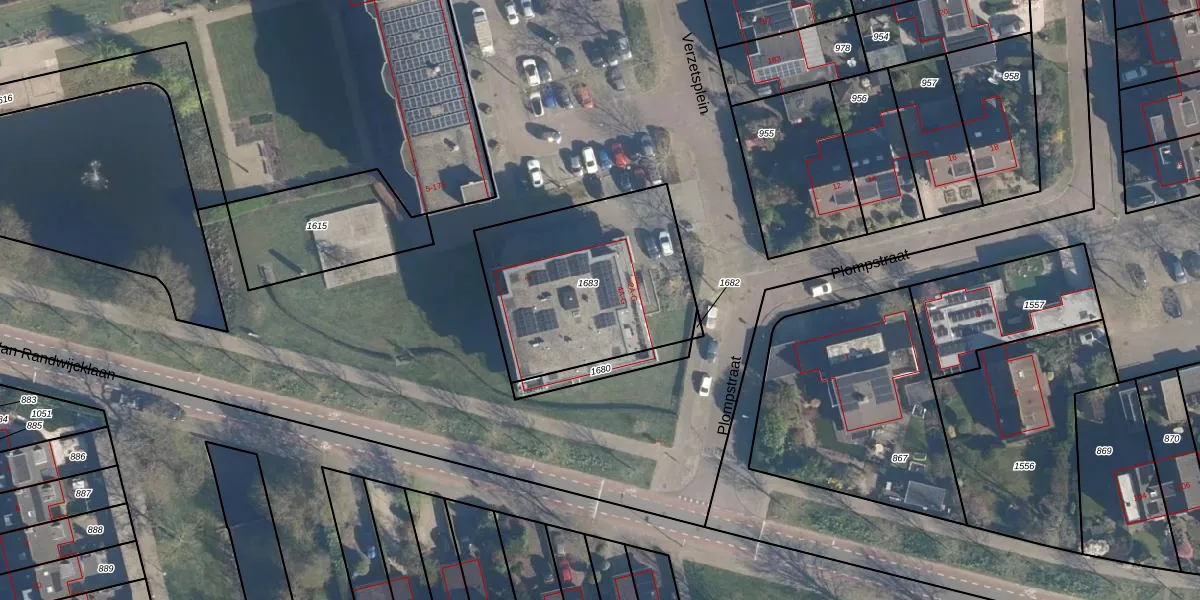 Het perceel waarop Verzetsplein 4-E staat heeft een oppervlakte van 865 m². Dit is een groot perceel. De perceeloppervlakte wordt geregistreerd door het Kadaster. Gedetailleerde informatie over de maten van dit perceel kunt u vinden in het rapport Kadastrale kaart met maatvoering van Verzetsplein 4-E.