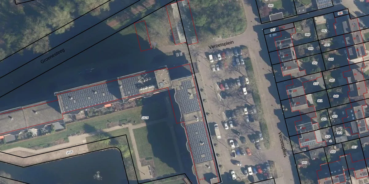 Het perceel waarop Verzetsplein 56 staat heeft een oppervlakte van 7155 m². Dit is een zeer groot perceel. De perceeloppervlakte wordt geregistreerd door het Kadaster. Gedetailleerde informatie over de maten van dit perceel kunt u vinden in het rapport Kadastrale kaart met maatvoering van Verzetsplein 56.