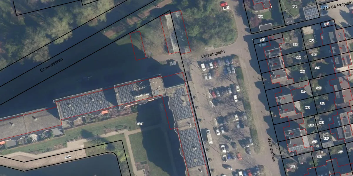Het perceel waarop Verzetsplein 57 staat heeft een oppervlakte van 7155 m². Dit is een zeer groot perceel. De perceeloppervlakte wordt geregistreerd door het Kadaster. Gedetailleerde informatie over de maten van dit perceel kunt u vinden in het rapport Kadastrale kaart met maatvoering van Verzetsplein 57.