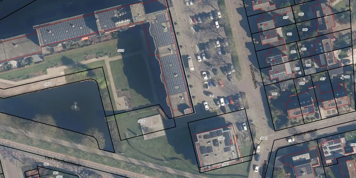 Het perceel waarop Verzetsplein 6-B staat heeft een oppervlakte van 7155 m². Dit is een zeer groot perceel. De perceeloppervlakte wordt geregistreerd door het Kadaster. Gedetailleerde informatie over de maten van dit perceel kunt u vinden in het rapport Kadastrale kaart met maatvoering van Verzetsplein 6-B.