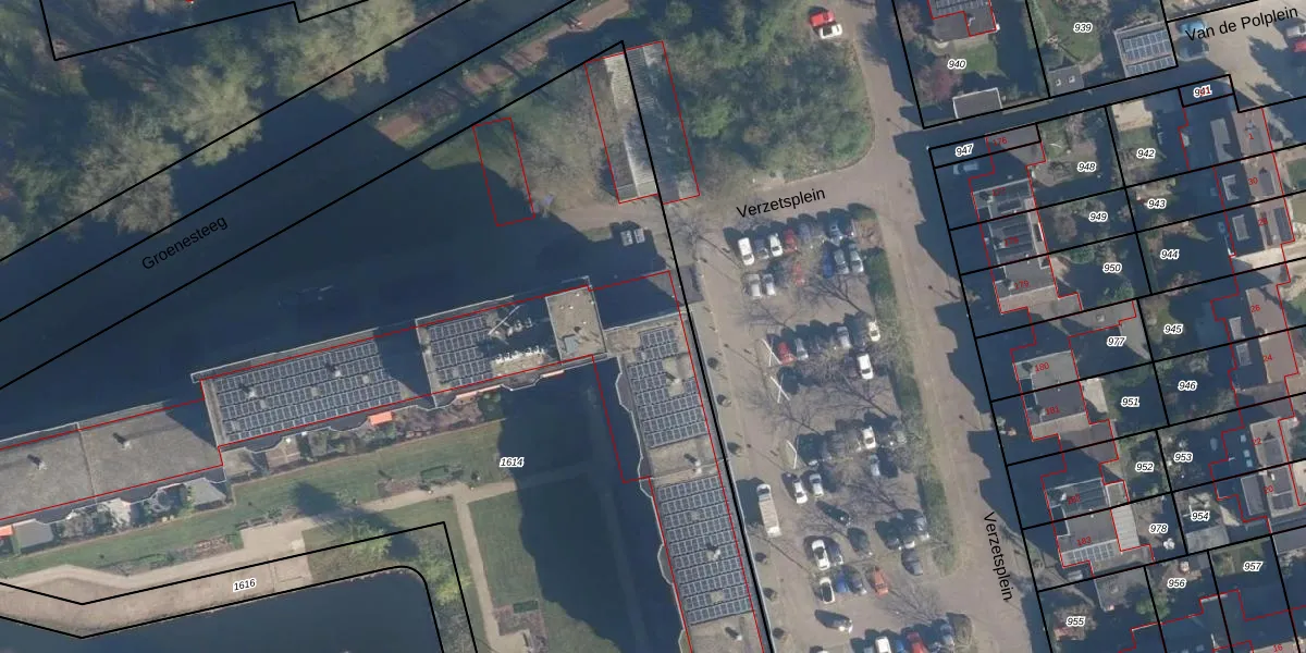 Het perceel waarop Verzetsplein 77 staat heeft een oppervlakte van 7155 m². Dit is een zeer groot perceel. De perceeloppervlakte wordt geregistreerd door het Kadaster. Gedetailleerde informatie over de maten van dit perceel kunt u vinden in het rapport Kadastrale kaart met maatvoering van Verzetsplein 77.