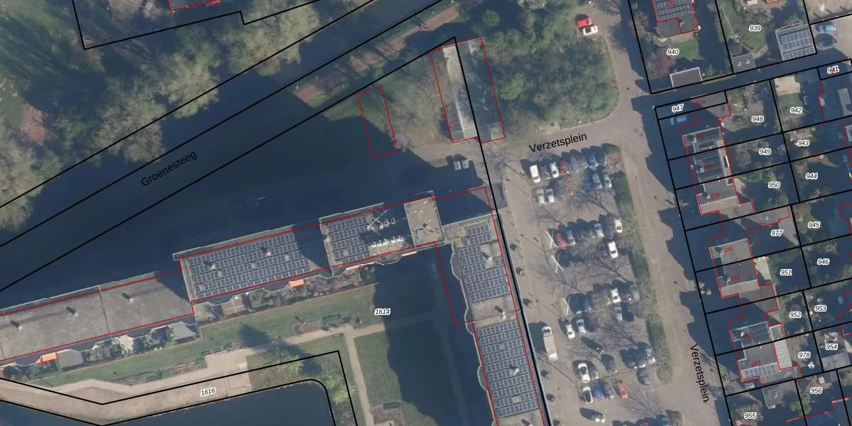 Het perceel waarop Verzetsplein 90 staat heeft een oppervlakte van 7155 m². Dit is een zeer groot perceel. De perceeloppervlakte wordt geregistreerd door het Kadaster. Gedetailleerde informatie over de maten van dit perceel kunt u vinden in het rapport Kadastrale kaart met maatvoering van Verzetsplein 90.