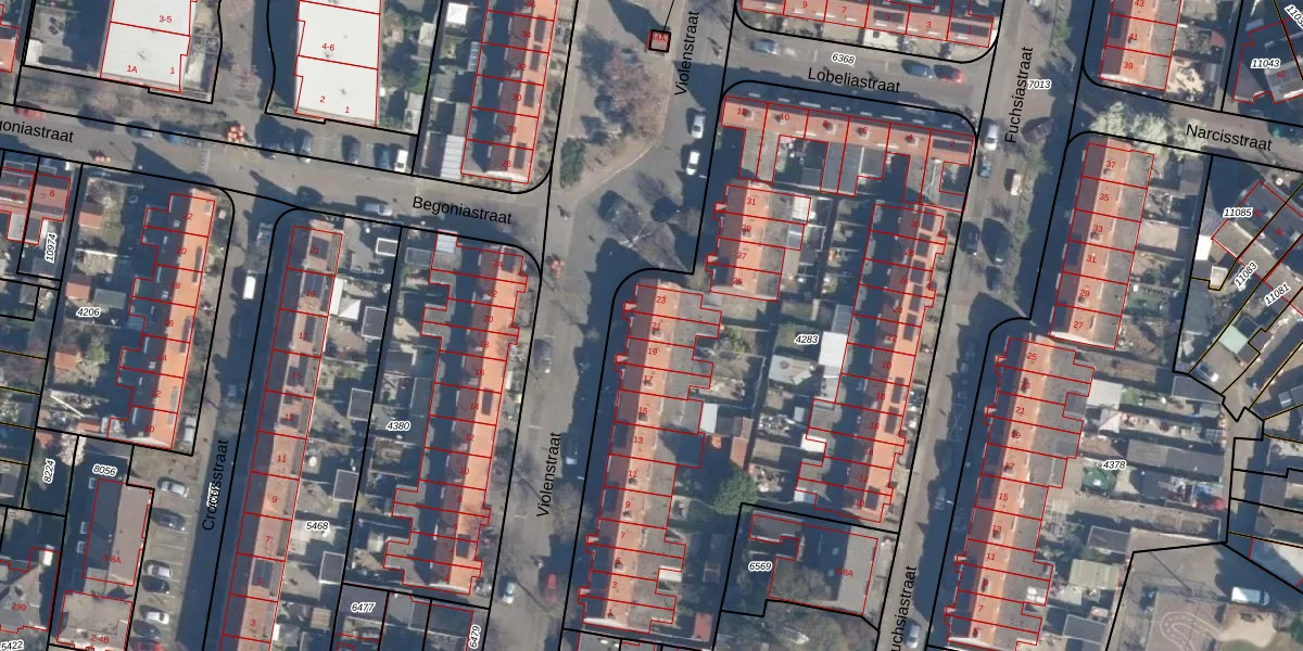 Het perceel waarop Violenstraat 21 staat heeft een oppervlakte van 3420 m². Dit is een zeer groot perceel. De perceeloppervlakte wordt geregistreerd door het Kadaster. Gedetailleerde informatie over de maten van dit perceel kunt u vinden in het rapport Kadastrale kaart met maatvoering van Violenstraat 21.