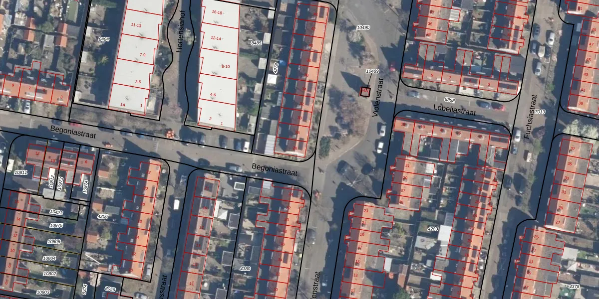 Het perceel waarop Violenstraat 26 staat heeft een oppervlakte van 1110 m². Dit is een zeer groot perceel. De perceeloppervlakte wordt geregistreerd door het Kadaster. Gedetailleerde informatie over de maten van dit perceel kunt u vinden in het rapport Kadastrale kaart met maatvoering van Violenstraat 26.
