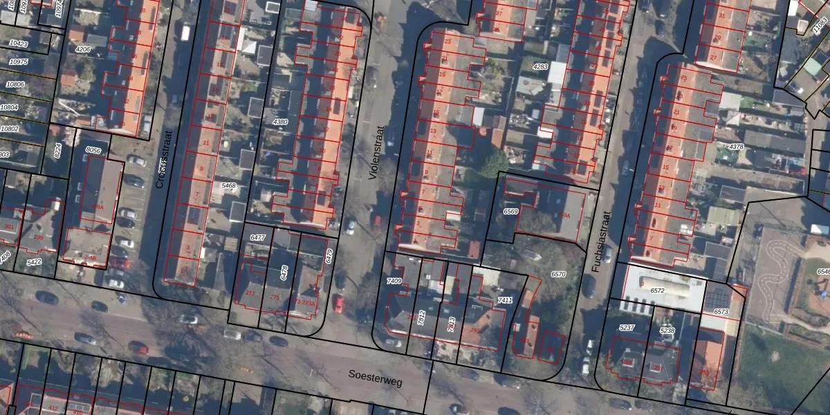 Het perceel waarop Violenstraat 5 staat heeft een oppervlakte van 3420 m². Dit is een zeer groot perceel. De perceeloppervlakte wordt geregistreerd door het Kadaster. Gedetailleerde informatie over de maten van dit perceel kunt u vinden in het rapport Kadastrale kaart met maatvoering van Violenstraat 5.