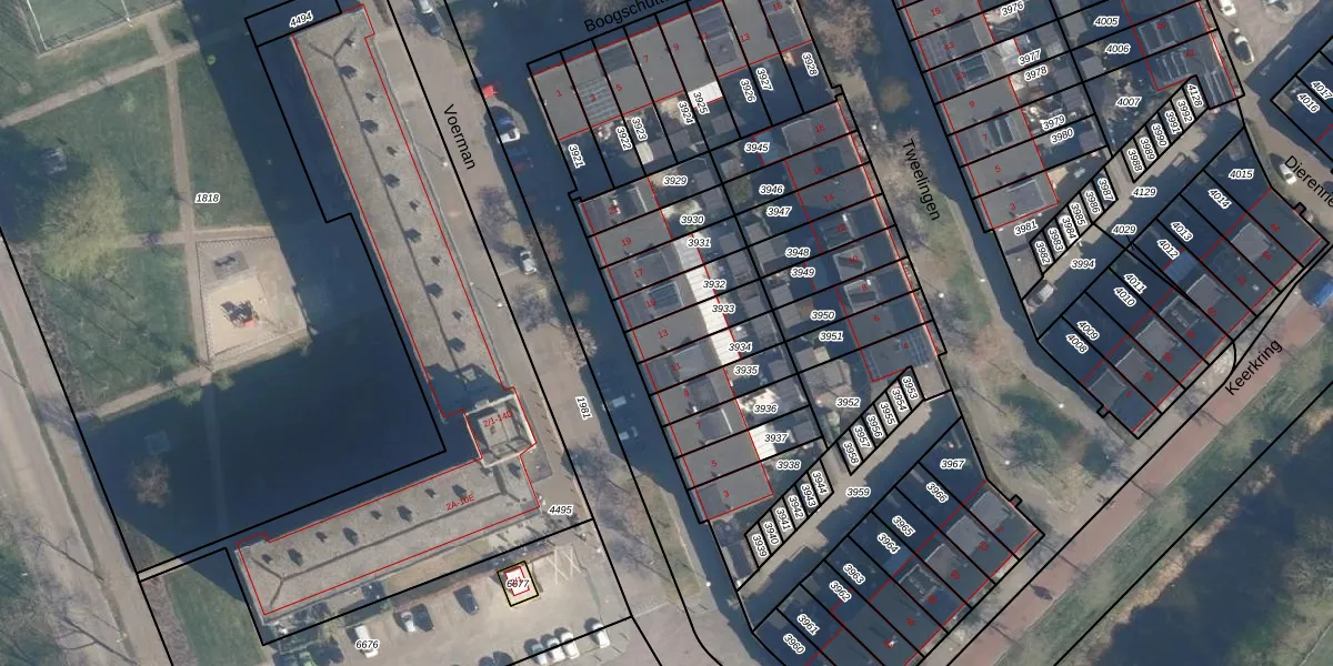 Het perceel waarop Voerman 13 staat heeft een oppervlakte van 112 m². Dit is een middelgroot perceel. De perceeloppervlakte wordt geregistreerd door het Kadaster. Gedetailleerde informatie over de maten van dit perceel kunt u vinden in het rapport Kadastrale kaart met maatvoering van Voerman 13.