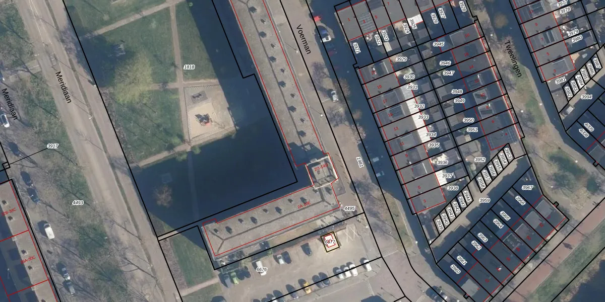 Het perceel waarop Voerman 2-D staat heeft een oppervlakte van 2197 m². Dit is een zeer groot perceel. De perceeloppervlakte wordt geregistreerd door het Kadaster. Gedetailleerde informatie over de maten van dit perceel kunt u vinden in het rapport Kadastrale kaart met maatvoering van Voerman 2-D.