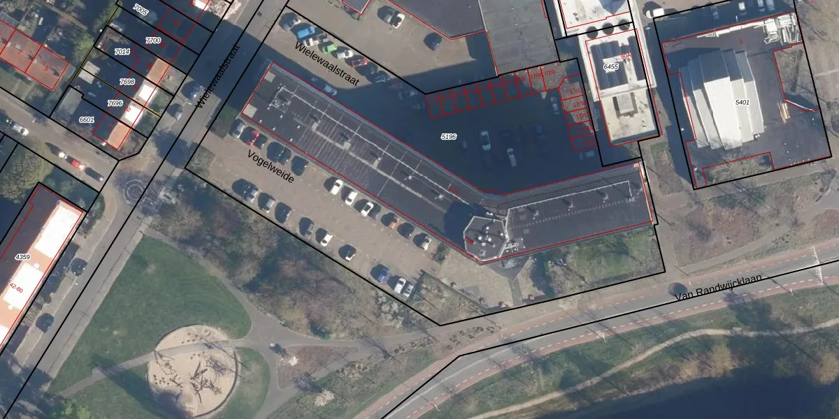 Het perceel waarop Vogelweide 90 staat heeft een oppervlakte van 5065 m². Dit is een zeer groot perceel. De perceeloppervlakte wordt geregistreerd door het Kadaster. Gedetailleerde informatie over de maten van dit perceel kunt u vinden in het rapport Kadastrale kaart met maatvoering van Vogelweide 90.