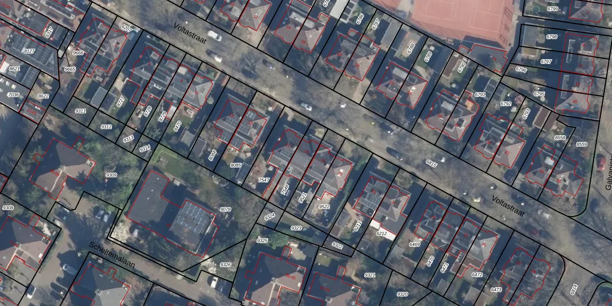 Het perceel waarop Voltastraat 19 staat heeft een oppervlakte van 185 m². Dit is een middelgroot perceel. De perceeloppervlakte wordt geregistreerd door het Kadaster. Gedetailleerde informatie over de maten van dit perceel kunt u vinden in het rapport Kadastrale kaart met maatvoering van Voltastraat 19.