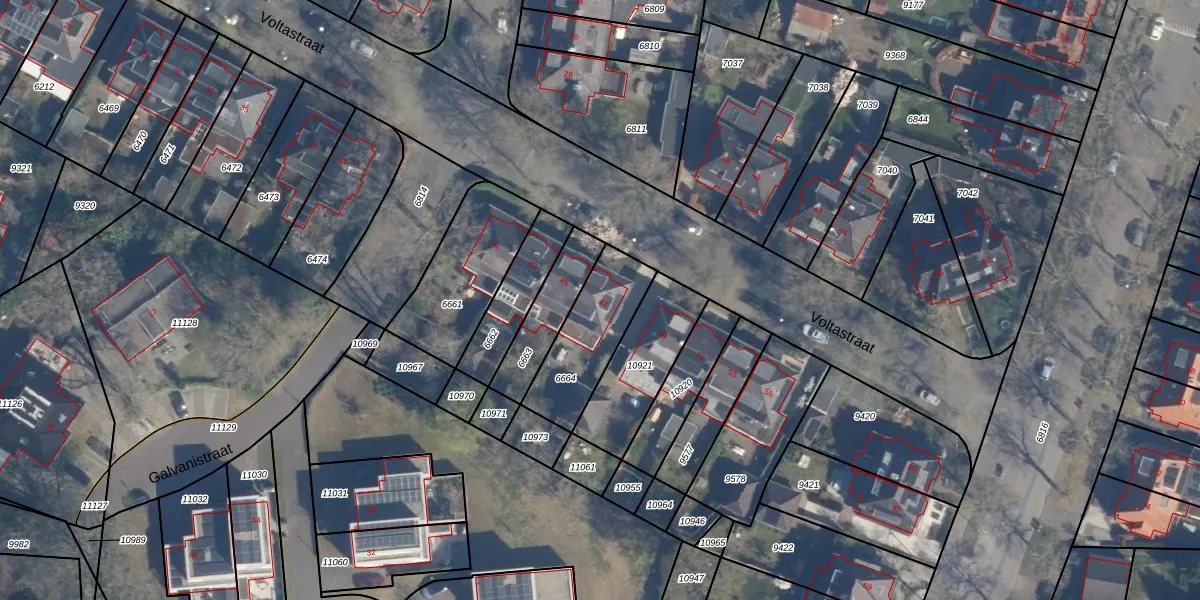 Voltastraat 47 is gelegen op kadastraal perceel AMF00B6664. Deze kadastrale aanduiding is uniek en wordt gebruikt door het Kadaster om eigendomsrechten en andere zakelijke rechten vast te leggen. Het perceel maakt onderdeel uit van de kadastrale gemeente Amersfoort.