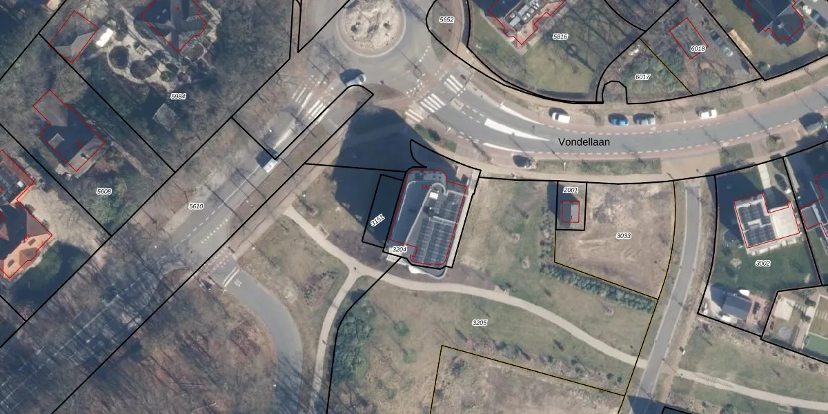 Het perceel waarop Vondellaan 1-D staat heeft een oppervlakte van 448 m². Dit is een groot perceel. De perceeloppervlakte wordt geregistreerd door het Kadaster. Gedetailleerde informatie over de maten van dit perceel kunt u vinden in het rapport Kadastrale kaart met maatvoering van Vondellaan 1-D.